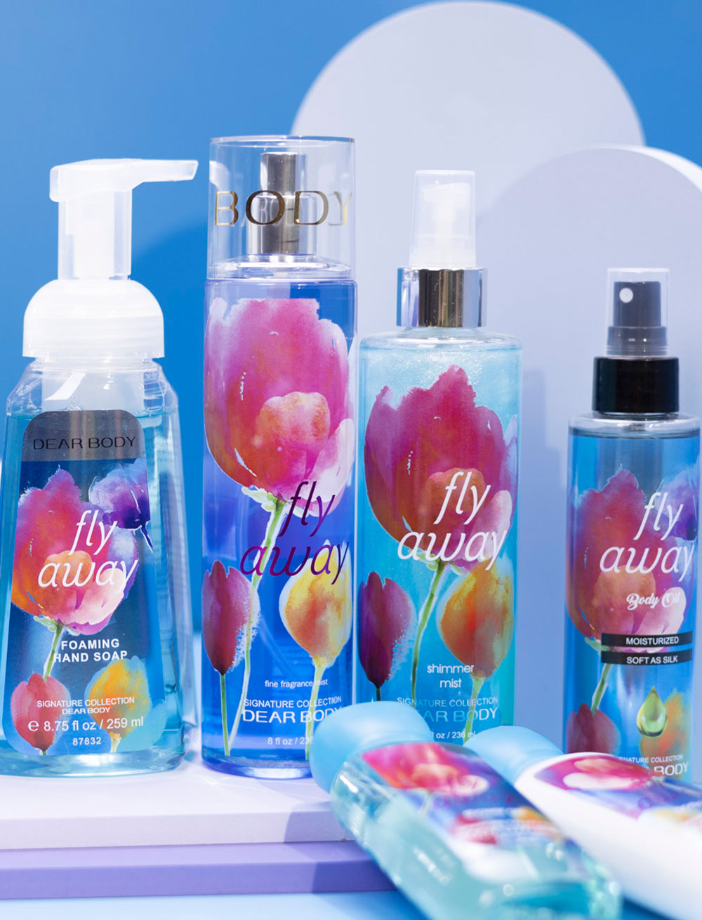 "Escape to a tranquil paradise with our 'Fly Away' candle scented body collection, a sensory journey that will transport you to a state of serenity and bliss.