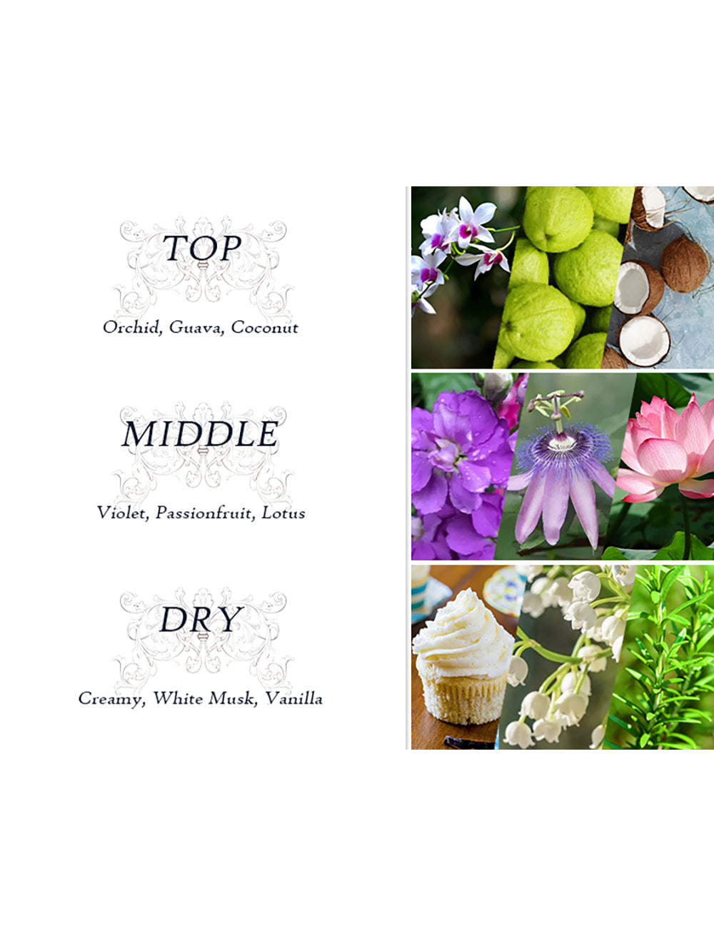 The opening fragrance is a mixture of cool orchids and guava,which brings a little stimulation and makes the fragrance more three-dimensional.
