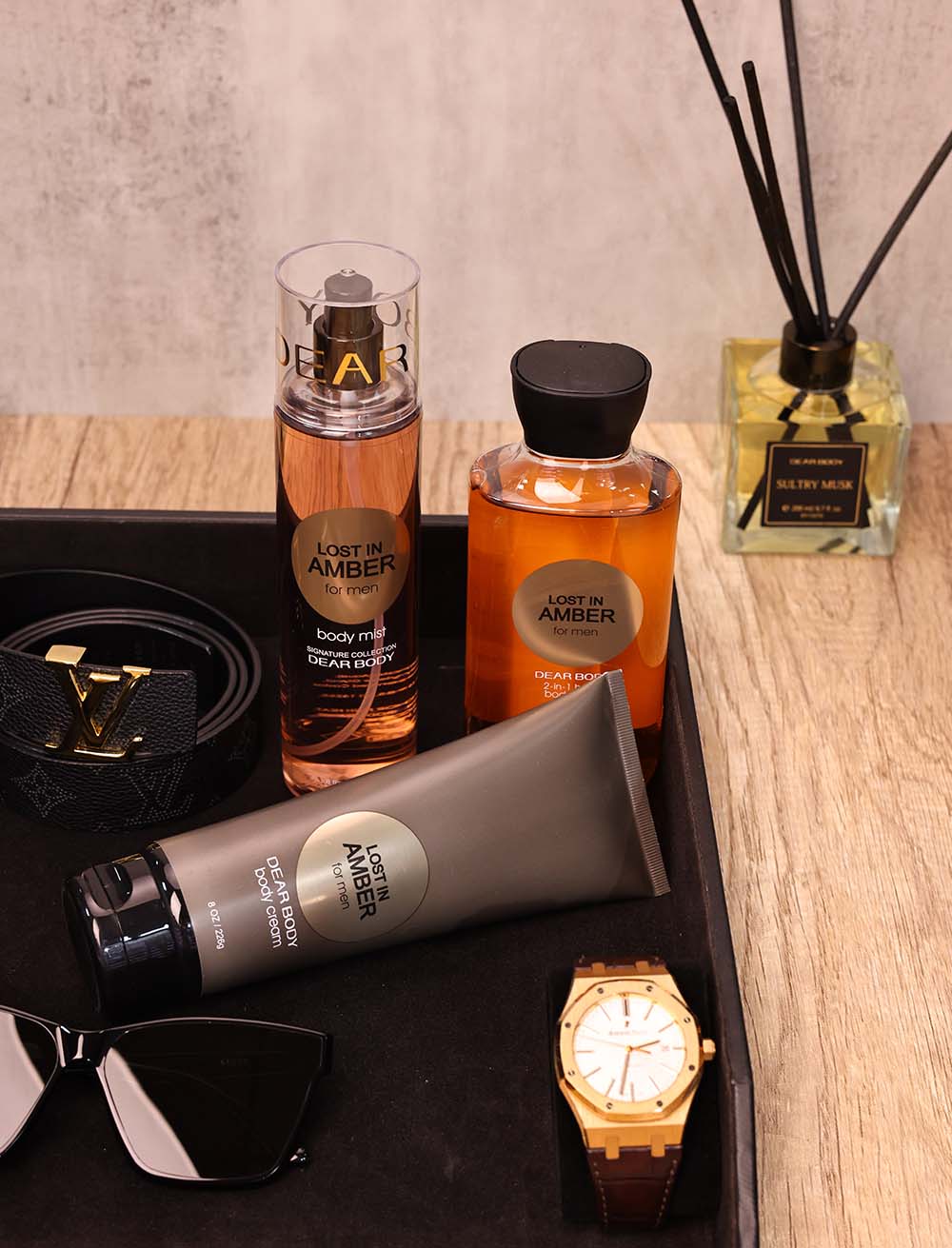 Elevate your senses with Lost in Amber for Men Body Mist. Infuse your day with the sophisticated and adventurous scent that embodies the essence of wanderlust and refinement, enveloping yourself in a fragrance that inspires moments of confidence and charm. Let the captivating aroma be your companion on every journey, making every moment an unforgettable exploration.