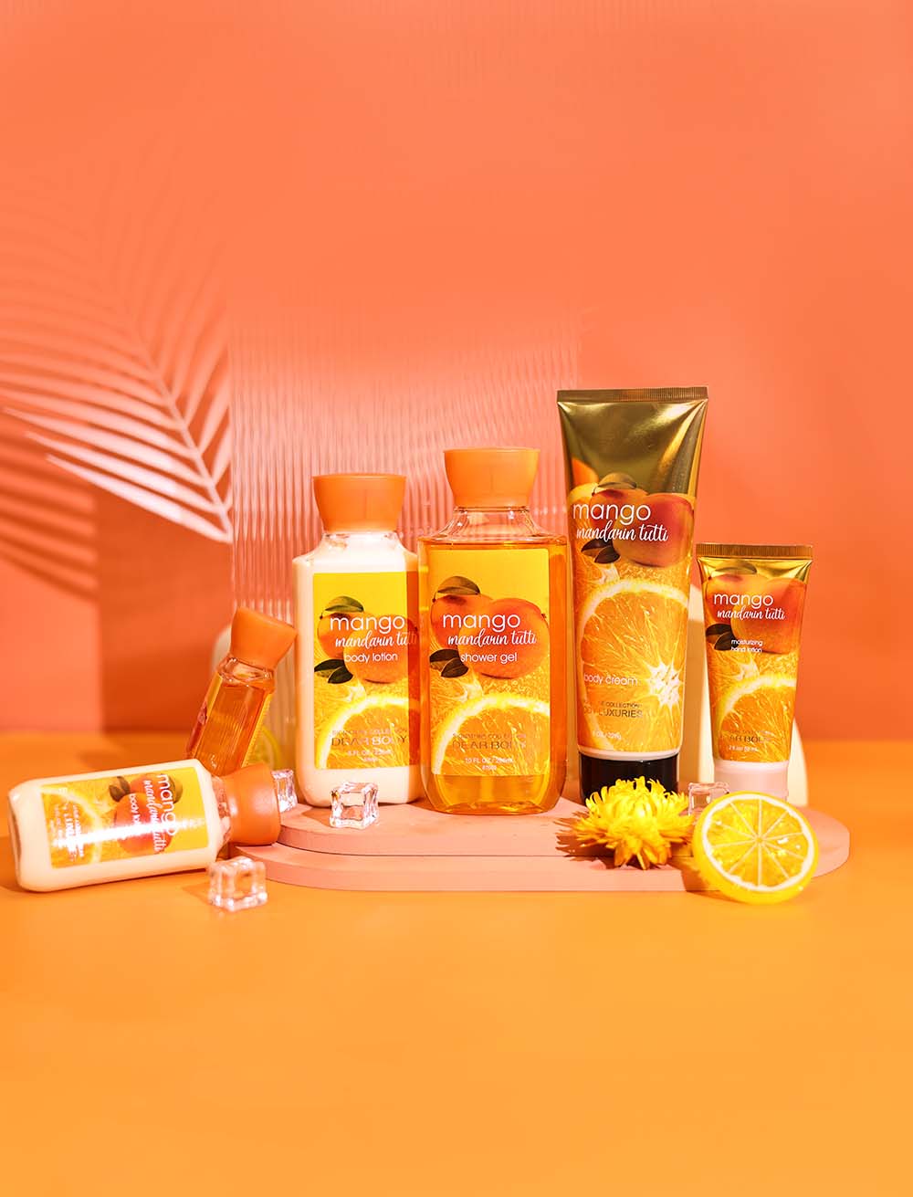 Our carefully crafted formula not only deeply moisturizes your skin but also leaves it velvety-soft, supple, and delicately scented with the vivacious essence of mangoes and mandarins. The creamy texture absorbs easily, making it an essential addition to your daily self-care regimen.